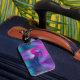 Beautiful magical unicorn luggage tag in a pink, purple, blue, green abstract design. Personalise this unicorn luggage tag with your name and never get stuck looking all day for your bag in the sea of luggage again!