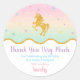 Unicorn magical birthday party favour sticker with glitter unicorn head, personalised with your child's name & thank you message.