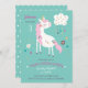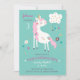This sweet Birthday Party Invitation features a cute Unicorn character and other whimsical elements such as a cloud, flowers and stars. The festive design is ideal for a party with a Unicorn theme. This trendy card is perfect for a young and happy child.