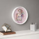 Enhance your baby or kids' nursery room decor with a custom-made wall clock. Cute Unicorn in rainbow pastel colours. Pink Glitter background. A whimsical design for wall art. Personalise with name, initials, message, or quote. Great gift idea.