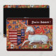 Classy ,elegant fleur de lys and heraldic motives,floral swirls red blue,flowers with a white sitting unicorn ,digital elaboration from an ancient mediaeval miniature .Easy to customise for graduation party,birthday ,wedding anniversary or whatever event you want.