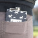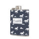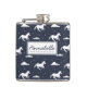 Unicorns, stars and puffy clouds in a dreamy midnight sky on whimsical personalised hip flask.