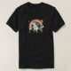 I give wanted to give this a 4 instead of a 5 because these Basic DARK T0shirts run unexpectedly SLIM or Narrow. Which is great if you do not have a potbelly, but I have a paunch. It isn't the shirt's fault that I've got a beer belly. The design and shirt itself is a quality cotton shirt. The color is more of a deep purple, but still a very pretty color. The Basic DARK T-shirts run a bit SLIMMER than the Basic Ts. The neck is a fraction narrower (or seems to be narrower) also. I'm a paunchy middle-aged woman and my neck is 12 inches (31cm) thick and the neckline fell about the same as in the photo of the man, and I had the desire to tug it a bit. So if you're a thick necked man or like loose shirts, be aware these are slimmer shirts. Once I get rid of my lockdown paunch it'll look great. The shirt washed well in cold water with no apparent bleeding. We don't have a dryer, so it hung dry. Did not shrink. Love the colors and the design. The design looks smaller on my shirt than it does on the model on-line. But still, it looks good on the shirt. The printing looks as it does on the model, just the size seems fractionally smaller. Washed garment in cold water, hung dry and design appeared unaffected.