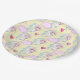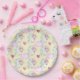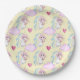 The design features a repeating pattern of elegant unicorn heads with flowing pastel-coloured manes in pink, blue, and yellow. The unicorns have expressive eyes and golden horns, giving them a magical and dreamy appearance. Surrounding them are fluffy pink clouds and glossy pink hearts, all set against a soft yellow background. The combination of elements creates a whimsical and enchanting aesthetic.