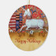 UNICORN PARCHMENT WITH RED RUBY GEMSTONE CERAMIC TREE DECORATION