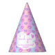 The design features a flying unicorn with a flowing pink and purple mane and tail, closed eyes and outstretched wings. The unicorn is surrounded by heart-shaped elements that alternate between shades of pink and purple. A seamless pattern with a dreamy pastel background that transitions between shades of pink, purple and blue. Tiny white stars and tiny heart shapes are scattered throughout. The overall aesthetic is whimsical and magical, evoking a soft, fantasy-like atmosphere.