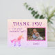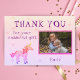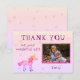 This birthday thank you card comes with a cute rainbow unicorn on a pink background with pink dots - great for a girl. Pink sleeping unicorn has a beautiful mane and tale. The text " Thank you for your wonderful gift " can be changed. Add your name and photo. The size, font and colour of the text are costumizable. Thank your friends and family for great present.