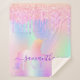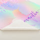 A trendy rainbow coloured background with unicorn and rainbow pastel colours in pink, purple, mint green. Decorated with drips in pink and purple. Decorated with a rainbow coloured unicorn. Personalise and add a name, written with a modern hand lettered style script with swashes. Purple coloured letters. To keep the swashes only delete the sample name, leave the spaces or emoji's in front and after the name.