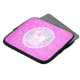 This unicorn computer sleeve features a cute unicorn and flowers design with faux pink glitter. Customise the text with your name.