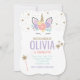 Magical Unicorn Birthday Party Invitation. Pastel rainbow colours and gold stars with floral unicorn design.