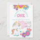 Unicorn Pink Teal Girl Virtual 1st Birthday Party Invitation