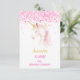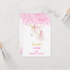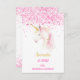 A cute unicorn and pink confetti greeting card. White background. Personalise and add a name, age and who it's from.