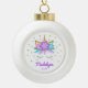 Unicorn Purple Flowers Stars Personalised Name Ceramic Ball Christmas Ornament