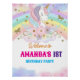 Welcome guests to a magical celebration with this beautiful, personalized Unicorn Rainbow 1st Birthday Welcome Sign! Featuring the lovely unicorn with a soft rainbow and cloud background, this sign (as seen in the image) is the perfect decoration to greet friends and family. It can be easily customized with the birthday star's name (e.g., "Amanda's") and the event details ("1st Birthday Party"), making it a stunning centerpiece for the entrance or party backdrop. It's a wonderful, high-impact way to reinforce the enchanting unicorn party theme.