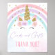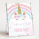 This adorable sign will be a great addition to your party. This design features a unicorn face with a pastel coloured rainbow and faux gold glitter embellishments.