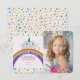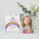 Cute, colourful stars and rainbow Birthday thank you card with photo of the girl and cat unicorn - Caticorn.