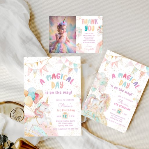 This item is a dreamy and enchanting design, perfect for celebrating a magical day! Featuring a soft pastel colour palette with delicate watercolor strokes, this item creates a whimsical and fairy-tale-like atmosphere. Unicorn stands amidst a stunning rainbow backdrop, symbolising wonder and joy. The design is accented with shimmering gold glitter details, adding a touch of sparkle and elegance. This item captures the essence of a magical celebration, making it ideal for a princess, fairytale, or fantasy-themed birthday party. With its soft pinks, purples, blues, and gold accents, it radiates charm and excitement, inviting guests to step into a world of magic, dreams, and endless fun. Perfect for anyone who loves unicorns, rainbows, and all things enchanting, this design is sure to make the birthday celebration truly unforgettable! ✨🦄🌈