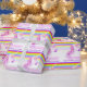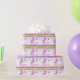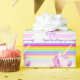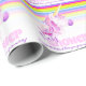 Whimsy unicorn art rainbow girls personalised baby shower wrapping paper. Customise with your own name and message, currently reads Congratulations Tracey on your new baby. Original watercolor art painting and graphic design by Sarah Trett. www.sarahtrett.com for www.mylittleeden.com