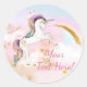 Unicorn stickers with pretty unicorn on a rainbow swirl background. You can easily customise these pretty unicorn stickers for your event by simply adding the text of your choice. You can also change the background colour. This is a printed design with no real glitter.