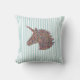 Unicorn Rainbow Teal and White Stripe Throw Pillow