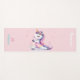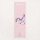A chic, personalised yoga mat with a cute unicorn theme, featuring a watercolor painting of an adorable unicorn, on a yoga mat, in a yoga pose, wearing a yoga suit with rainbow detail. In the background, pink stars and a pastel pink hue. A perfect gift for a girl, teen or woman - mum, your girlfriend, best friend or any special person in your life who loves yoga, unicorns and pastel colours, for a birthday, Christmas, Mother's Day or any occasion.