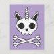 This graphic art piece combines the whimsical and the macabre, featuring a stylised skull with large, expressive eyes, a unicorn horn, and cat-like ears. As seen on Sophie's t-shirt, the skull is accompanied by crossbones, enhancing its playful yet gothic appeal. The design uses a simple black and white colour scheme, which emphasises the bold and graphic nature of the illustration. This unique blend of elements makes it a perfect choice for those who appreciate a blend of fantasy, dark humour, and minimalist art.