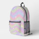 Lightweight and durable, our custom all-over-print Backpack is just what you need. The spacious interior is ideal for travel, school, gym, or any mobile storage need. Bring your stuff with you in style! Features Adjustable padded shoulder straps, two chambers on the inside for laptop storage, mesh side pockets and an identification label.