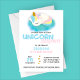 Invite your child's friends to a magical unicorn sleepover birthday party with our adorable Unicorn Sleepover Birthday Party Invitation. Featuring a charming cartoon unicorn peacefully sleeping on a vibrant blue cloud, this birthday invitation combines modern calligraphy with classic fonts for easy readability. The back design is filled with whimsical pink, purple, yellow, and blue swirls, stars, and shimmer accents that perfectly complement the enchanting front. Ideal for kids’ sleepover parties, this unicorn-themed invitation is perfect for adding a fun, whimsical touch to your child's special celebration.