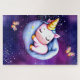 Unicorn slumber party pink purple glitter stars jigsaw puzzle