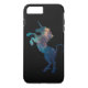A fantasy silhouette of a unicorn with a space nebula pattern.