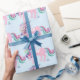 Unicorn Sparkl Glitter Pink Floral Candy Baby Blue Wrapping Paper