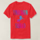 I give wanted to give this a 4 instead of a 5 because these Basic DARK T0shirts run unexpectedly SLIM or Narrow. Which is great if you do not have a potbelly, but I have a paunch. It isn't the shirt's fault that I've got a beer belly. The design and shirt itself is a quality cotton shirt. The color is more of a deep purple, but still a very pretty color. The Basic DARK T-shirts run a bit SLIMMER than the Basic Ts. The neck is a fraction narrower (or seems to be narrower) also. I'm a paunchy middle-aged woman and my neck is 12 inches (31cm) thick and the neckline fell about the same as in the photo of the man, and I had the desire to tug it a bit. So if you're a thick necked man or like loose shirts, be aware these are slimmer shirts. Once I get rid of my lockdown paunch it'll look great. The shirt washed well in cold water with no apparent bleeding. We don't have a dryer, so it hung dry. Did not shrink. Love the colors and the design. The design looks smaller on my shirt than it does on the model on-line. But still, it looks good on the shirt. The printing looks as it does on the model, just the size seems fractionally smaller. Washed garment in cold water, hung dry and design appeared unaffected.