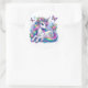 This sticker is shown with a cute colourful unicorn art print.