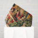 This unicorn tapestry is an enhanced reproduction of the "The Unicorn is Found" tapestry, which is the second tapestry of a series of seven mediaeval tapestries that showcases the mythical unicorn.The series is entitled "The Hunt of the Unicorn" which are also referred to as the Unicorn Tapestries". The tapestries were created from 1495-1505. This Unicorn is Found tapestry shows a group of mediaeval noblemen and hunters, as well as all kinds of ferocious lions and leopards. There is a unicorn at the front, a beautiful white unicorn, which has its horn pointed downward as it kneels. There is a mediaeval fountain between the unicorn and the huntsmen.