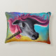 The cushion is small to medium sized. It can be washed. It is well constructed. The material used is pleasant and feels decent quality. It has a very slight plush feel which is good. It is well labelled and its care clearly stated. Theres nothing not to like about it. All in all a good item. The deduction of one star overall is due to long delays in delivery to the UK. It's not clear if this was due to Zazzle or somewhere else in the chain as I did not receive status updates of dispatch or progress. I cannot comment anymore on that other than to say that was our experience but it may not be the same for you. The printing was surprisingly close to what we were expecting. Its an art piece and on material so its hard to assess the precision of printing but it seems close to the original. The soft lines are reproductions of the original. The colour is a fair reflection of the painting. This was printed in the US and it looks like US quality. No issues.