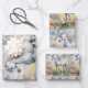 3 sheets of wrapping paper showing a dreamy image of a white unicorn with a rainbow mane standing in a field of flowers. In the background are majestic mountains. The perfect gift to give those who love magical and mystical unicorns. Contains generative content.
