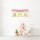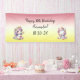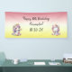 This banner shows two happy unicorns, with daisies, on a gradient background. The text reads, "Happy 10th Birthday, Alexandra! 01-30-24," and is customisable. It's perfect for including at a unicorn-themed event!