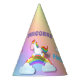 Colourful Unicorns and Rainbow Birthday Party Hat for kids parties.