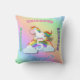 Unicorns and Rainbow Birthday Pillow with customisable name and birthday date on back. Front has age and name. Back has birthday date.