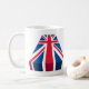 Union Jack, the british flag in a modern 3D version on both sides of a white mug. It can be a nice gift for any tourists visiting the UK.