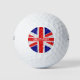 This flag of Great Britain design golf ball is white and dimpled, with a diameter of at least 1.680 inches (42.67 mm) and a mass no more than 1.620 ounces (45.93 grams). The dimples on the surface are crucial for aerodynamics, reducing drag and allowing the ball to travel farther. Golf balls are designed with multiple layers to optimise distance, spin, and feel. Union Jack flag design golf ball