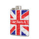 Hip flask flag of Great Britain design. You can customise this hip flask with any text of your choice. Should you require any help with customising then contact us through the link on this page. Union Jack flag design personalised hip flask