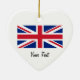 A hanging ornament with the Union Jack, the flag of Great Britain - Northern Ireland, England, Wales and Scotland, in red white and blue.