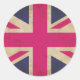 A graphic illustration of an old Union Jack Flag in bright pink, blue and cream an alternative to the traditional red, white and blue