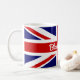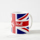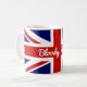 The colourful red white and blue Union Jack flag of the United Kingdom shown here with a funny familiar slang swear word quote, "Bloody Hell". The word bloody…is a corruption of God's blood, a phrase used as far back as the 17th century… hell was added later. This idiom is a very informal and rude way of expressing great anger. You can edit this text with any other text of your choice, or even delete the text entirely if you prefer the mug without it.