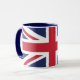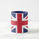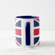 The standard flag for the United Kingdom is the Union Jack. The flag contains red and white crosses on a blue background which combined three other flags of Great Britain -- the red cross of Saint George of the Kingdom of England, the white cross of Saint Andrew for Scotland , and the red cross of Saint Patrick for Ireland.