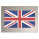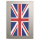 A colourful red white and blue flag of the United Kingdom set against a soft shaded beige background.