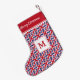 Stylish CHRISTMAS STOCKING showing the flag of THE UNITED KINGDOM in a tiled pattern. At the centre there is a MONOGRAM which is CUSTOMIZABLE, so you can add your own initial. At the top there is a placeholder greeting which is also customisable so you can add a name or greeting. Front and back are the same. Matching home decor, cards and gifts are available in the UK Collection.