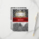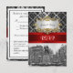 Customisable Invitations and accessories with a black and white view New York City's Union Square Park in the winter, lightly covered with snow. It also features a black damask pattern against a silver grey background, a red ribbon and a white label in your choice of a silver or gold look frame.