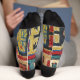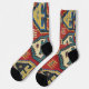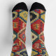 This handsome design, taken from a fragment of a hand woven flat weave rug, has a wonderful geometric pattern. The original antique Kilim style fragment is approximately 150 years old. The colours are rose red, midnight, navy, royal, turquoise blue, camel, and creamy white. This is an ancient tribal design that is still stylish today and will be for many more years to come. Classic never goes out of style. Your feet will look like they're having fun when you are wearing these unique socks.